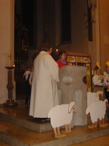 Den Abschluss der Vorweihnachtszeit bildete ein, an beiden Schulstandorten sehr festlich gestalteter, Gottesdienst. Schwerpunkt beider Gottesdienste war das Schulspiel „Die drei Türen“, vorgeführt von Kindern der Schulspiel AG aus Kist unter der Leitung von Frau Knaup. In dem Stück geht es um die Herbergssuche von Maria und Josef am Heiligen Abend. Angesichts 32000 Kinder ohne Wohnung in Deutschland ein topaktuelles Thema. Die Schulspielgruppe, die sich aus Kindern der 1. und 2. Klasse aus Kist zusammensetzt, bewiesen bei der Aufführung wieder einmal viel sprachliches Talent und Disziplin. Maßgeblich daran beteiligt ist Frau Knaup, die es versteht, aus den Kindern all diese Talente herauszuholen und zu fördern. Vielen Dank dafür! Unser Dank geht auch an alle anderen an der Gestaltung des Gottesdienstes beteiligten Lehrer und Kinder. Für die Leitung des Gottesdienstes möchten wir uns besonders bei den zwei Pfarrerinnen Frau Männer für Altertheim und Frau Müller-Oldenburg für Kist bedanken.