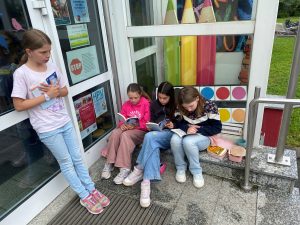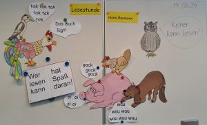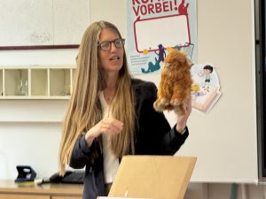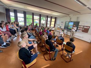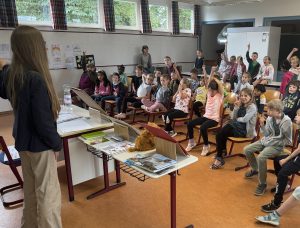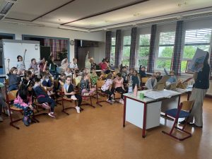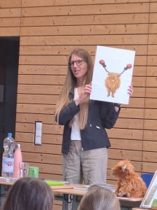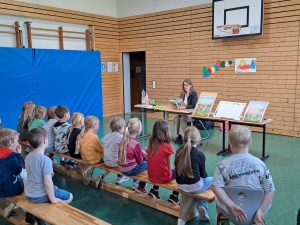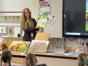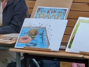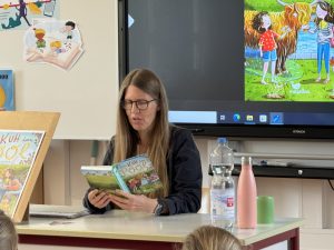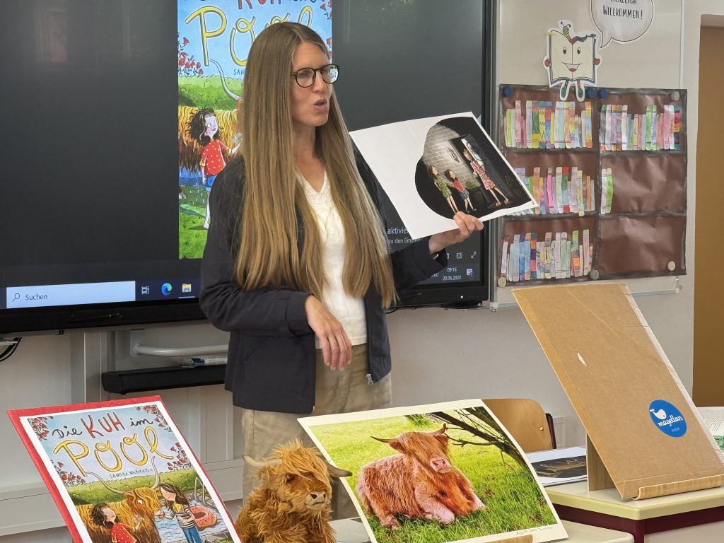 Als ein Highlight der Lesewoche fand am Dienstag in Altertheim und am Donnerstag in Kist eine Autorinnenlesung statt. Die Autorin, Sandra Niermeyer, hielt insgesamt 4 Lesungen (zwei in Altertheim/ zwei in Kist) zu ihrem Buch „Die Kuh im Pool“. Bei den jeweils 70-minütigen Lesungen las die Autorin nicht nur interessante Stellen ihres Buches vor, sondern die Kinder erfuhren auch viel über die Entstehung eines Buches an sich.