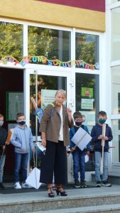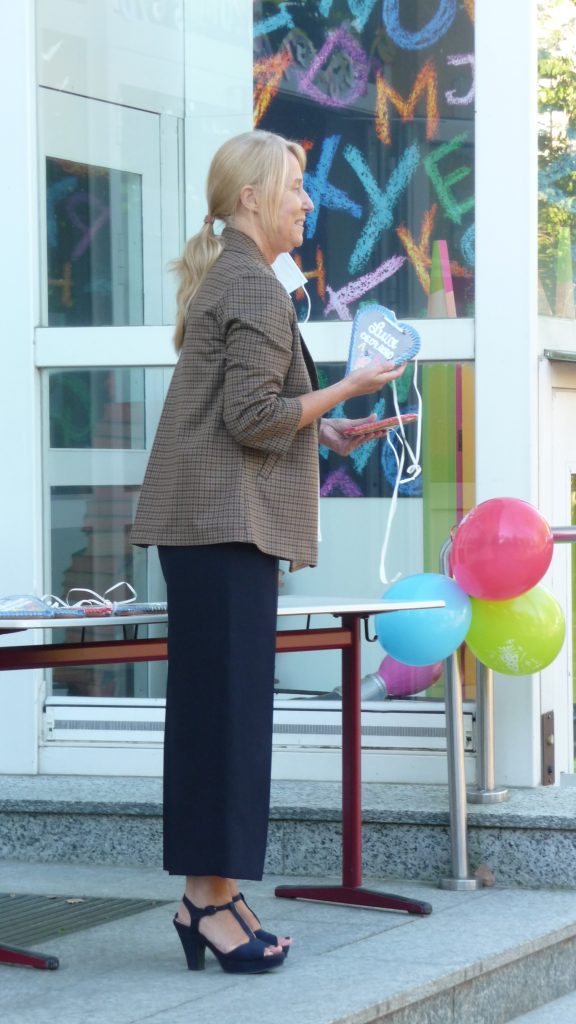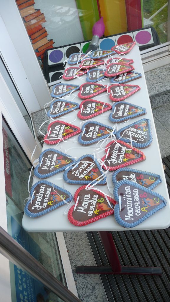 Verbunden mit dem Überreichen eines Lebkuchenherzens zur Erinnerung an den ersten Schultag, gab die Schulleiterin, Frau Grammel, zu bedenken, dass man in der Schule nicht nur mit dem Kopf, sondern auch mit dem Herzen lernt.
