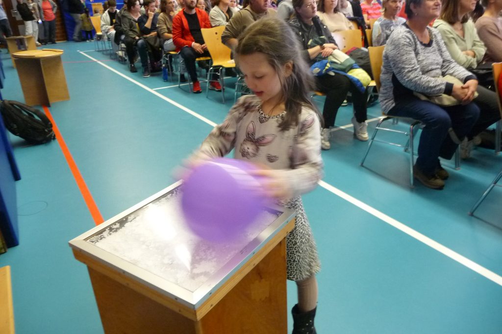 Zum zweiwöchigen Besuch der MINIPHÄNOMENTA gehört auch der Tag der Öffentlichkeit, an dem alle Interessierten zum fröhlichen Forschen an den Experimentierstationen eingeladen werden. Dies hat einen besonderen Grund: Die gesamte Schulfamilie soll mit anpacken, wenn es darum geht, die MINIPHÄNOMENTA-Stationen nachzubauen, um sie nachhaltig im Schulalltag integrieren zu können.