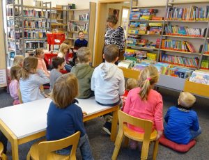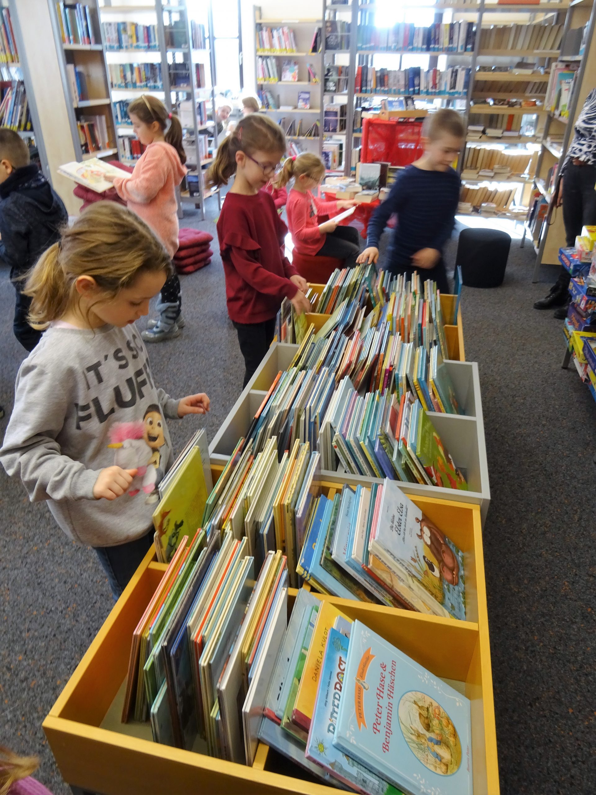 Die Erstklässler sind nun bereits im 2. Schulhalbjahr angekommen und können inzwischen schon viele Buchstaben. Zeit, sich nun auch ganzen Büchern zu widmen! Deshalb ging die 1a am Montag, den 2.3., erstmals in die Kister Bücherei, wo Frau Dr. Sokolovic eine kleine Einführung gab. Dann durften die Kinder nach Herzenslust schmökern. Am Ende fand jeder ein Buch, das er sich ausleihen durfte. Bestimmt war das für viele nicht der letzte Büchereibesuch in den nächsten Wochen!