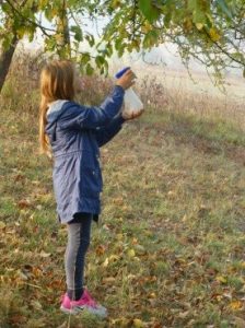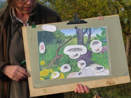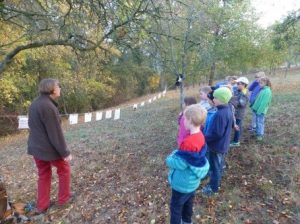 Nachdem sich die Klasse 2b in den letzten drei Wochen ausgiebig mit der Hecke und ihren Sträuchern beschäftigt hatte, machten alle am 19.10.18 zusammen mit der Biologin Frau Finkenstein einen Unterrichtsgang zu einer Hecke am Feldrand von Oberaltertheim. Dort konnten die Kinder zeigen, dass sie viel gelernt haben und auch einige interessante neue Informationen erfahren. Wer hätte gedacht, dass aus Ligusterbeeren Tinte hergestellt werden kann? Zunächst lösten die Schüler in Gruppen Rätsel zu den verschiedenen Heckensträuchern und suchten den passenden Strauch an der Hecke. Alle  Heckenfrüchte konnten richtig zugeordnet werden. Im Anschluss traten sie in zwei Teams gegeneinander an. Frau Finkenstein stellte Fragen zu den Sträuchern und ihren Früchten. Welches Kind konnte am schnellsten auf den richtigen Strauch zeigen? Am Ende siegte das eine Team mit einem Punkt Vorsprung. Nun wurden die Kinder zu Detektiven, die mit Spinnennetzdetektoren auf die Suche nach versteckten Spinnennetzen gingen. Staunend betrachteten alle die unterschiedlichsten, feingesponnenen Netze an Grashalmen und Ästen.