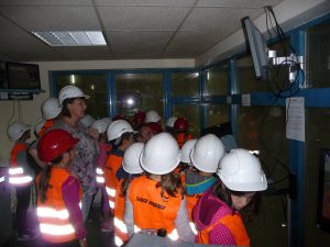 Nun brachte uns der Bus zum Müllheizkraftwerk. Hier machten wir erst mal eine Pause und konnten uns mit Brötchen, Wasser oder Apfelschorle stärken. Frau Gerstner erklärte uns dann an einem Modell, wie das Kraftwerk funktioniert. Danach ordneten wir in Gruppen Fotos, um zu zeigen, was wir gelernt hatten. Mit Helmen ausgerüstet besichtigten wir zum Abschluss den Müllbunker.