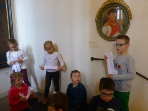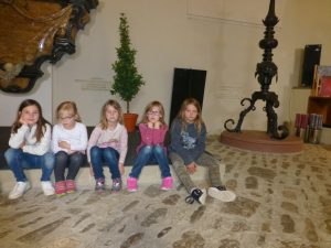 Beim Rundgang im Museum gab es immer wieder Hinweise auf Bildern, wie die Menschen früher schrieben. Papyrus und Pergament kannten auch schon die alten Ägypter und Römer. Leider wurden immer nur Männer mit Büchern und Schreibwerkzeug dargestellt – als Zeichen ihrer gehobenen Stellung in der Gesellschaft. Neidisch wurden einige Zweitklässler schließlich beim Betrachten eines alten Schreibtisches mit unzähligen Geheimfächern.