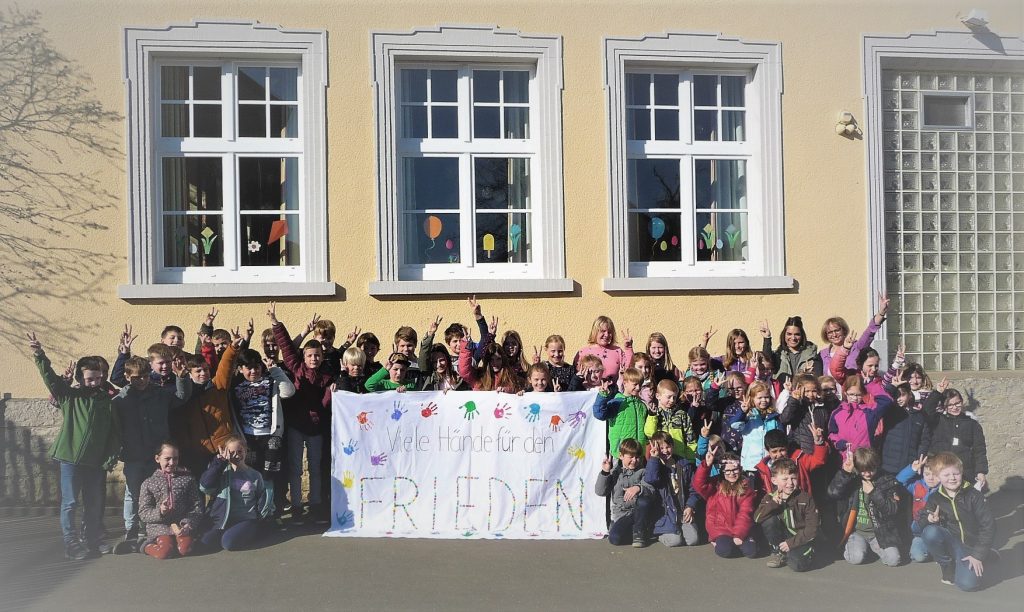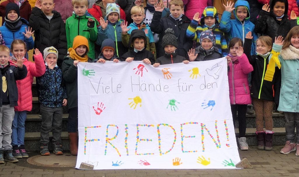 Unter diesem Motto setzten die Kinder der Grundschule Kist/Altertheim ein kleines Zeichen für den Frieden.