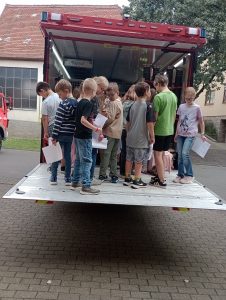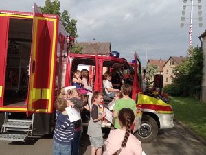 Am 19. Juni 2024 besuchte die Klasse 3b zusammen mit Frau Grammel die Freiwillige Feuerwehr Oberaltertheim. Früher gab es einen großen Brand in Oberaltertheim nach dem nur noch drei Häuser übriggeblieben sind. Diese Häuser gibt es heute noch.