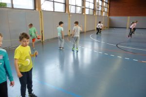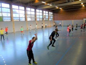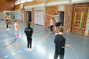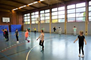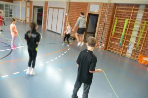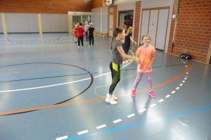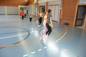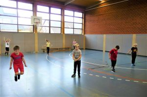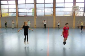 Nach dem Weihnachtsbasteln mit den Eltern durften wir gleich weiter  zur nächsten Aktion. Unsere Klasse durfte an der Aktion „Skipping Hearts“ – Seilspringen macht Schule!  der Deutschen Herzstiftung e.V. teilnehmen .Wir haben Rope Skipping, also Seilspringen,  alleine, zu zweit und mit einem großen Seil geübt. Danach haben wir eine Show zu Musik eingeübt. Es hat richtig Spaß gemacht und unsere Herzen haben kräftig geschlagen.