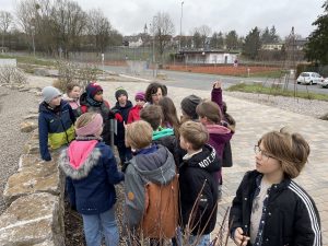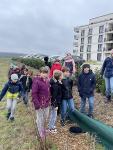 Am Montag, den 20.03.2023 besuchten wir, die Klasse 4a, die Kröten am Teich des Seniorenheims in Kist. In der ersten Schulstunde lief unsere Lehrerin mit uns los. Als wir dort ankamen, begrüßte uns Frau Raupp vom Bund Naturschutz sehr nett.