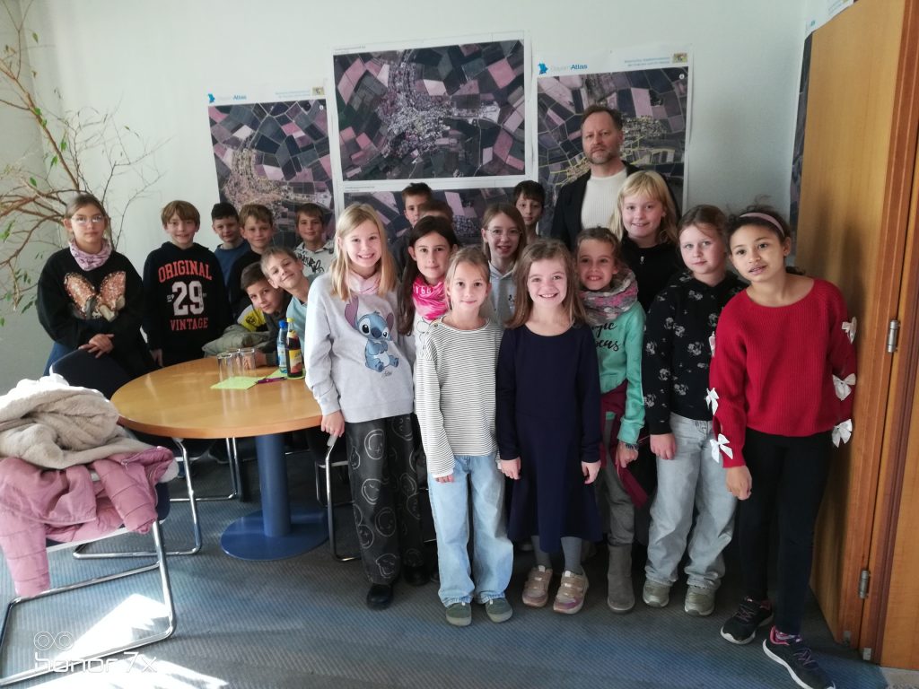 Am 30.10.25 besuchten wir, die Klasse 4b, unseren Bürgermeister Herrn Korbmann und seine Sekretärin Frau Thoma im Altertheimer Rathaus. Herr Korbmann beantwortete ausführlich unsere Fragen und erklärte uns z. B., wie viel die Gemeinde Altertheim im letzten Jahr eingenommen hat. Besonders beeindruckend fanden wir die Bebauungspläne der Ortschaften und das Modell des neuen Kindergartens. Anschließend durften wir hinunter in den Keller gehen und das Archiv besichtigen. Der Archivpfleger Herr Geis holte für uns Bücher der Gemeinde von früher aus den feuersicheren Stahlschränken und erzählte ihre Geschichte. Wir konnten es kaum glauben, dass eines der Bücher, ein mehrere hundert Jahre altes Gemeindeprotokoll von Unteraltertheim, vor 60 Jahren von einem Kind zufällig auf einer Mülldeponie gefunden wurde. Jetzt sind alle Bücher restauriert und die ältesten stehen sogar als Abschriften interessierten Bürgern zur Verfügung. Am Schluss bekamen wir von Frau Thoma noch Gummibärchen und ein Heft mit Informationen zur Gemeinde. Der Besuch hat uns allen sehr gefallen!