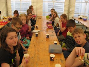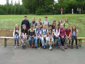 Bei der letzten Station ging es um die Arbeit in einer Redaktion. Das fand E. so interessant, dass sie nun Journalistin werden will. Zum Abschluss bekamen wir im Partyzelt ein erfrischendes Getränk und konnten Grüße in die Main Post schreiben. Die Grüße von Yannick und Leonhardt waren am nächsten Tag schon in der Main-Post zu lesen.