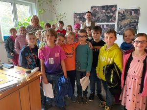 Am 17.10.2024 waren wir, die Klasse 4b mit Frau Frank zu Besuch beim Bürgermeister im Rathaus von Altertheim. Herr Korbmann und seine Sekretärin Frau Thoma begrüßten uns freundlich und zeigten uns die Räume des Rathauses. Herr Korbmann mit seiner Käppi sah gar nicht aus wie ein typischer Bürgermeister. Aber er macht dieses Amt ehrenamtlich, weil er viele Sachen in der Gemeinde verbessern möchte. Wir haben dem Bürgermeister viele Fragen gestellt, die er alle gut beantwortet hat, z.B., dass die 3 Ortsteile ungefähr 2000 Einwohner (davon 300 Kinder) haben, welche Hauptaufgaben die 12 Gemeinderäte beschließen müssen und dass der neue Bolzplatz in Unteraltertheim im Frühjahr fertig sein wird. Beeindruckt hat uns auch das Modell des neuen Kindergartens von Unteraltertheim. Zum Abschluss gab es für alle noch Gummibärchen. Das war ein aufschlussreicher Besuch.